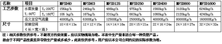 MFSD系列多級流化床噴霧干燥機技術參數表: